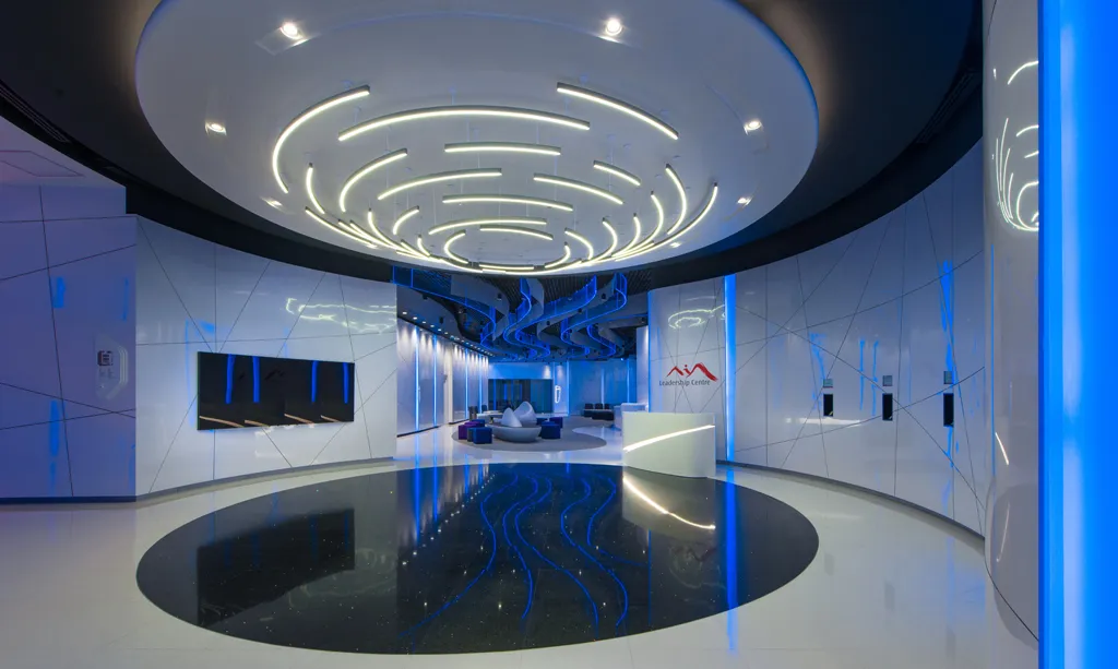 The AIA training center is a state of the art training facility set up for the purpose of orientating and training AIA management and staff. The fit-out is spread over two floors and includes a reception & arrival hall, theatre & pre-function area, training rooms, and seating & break out areas.