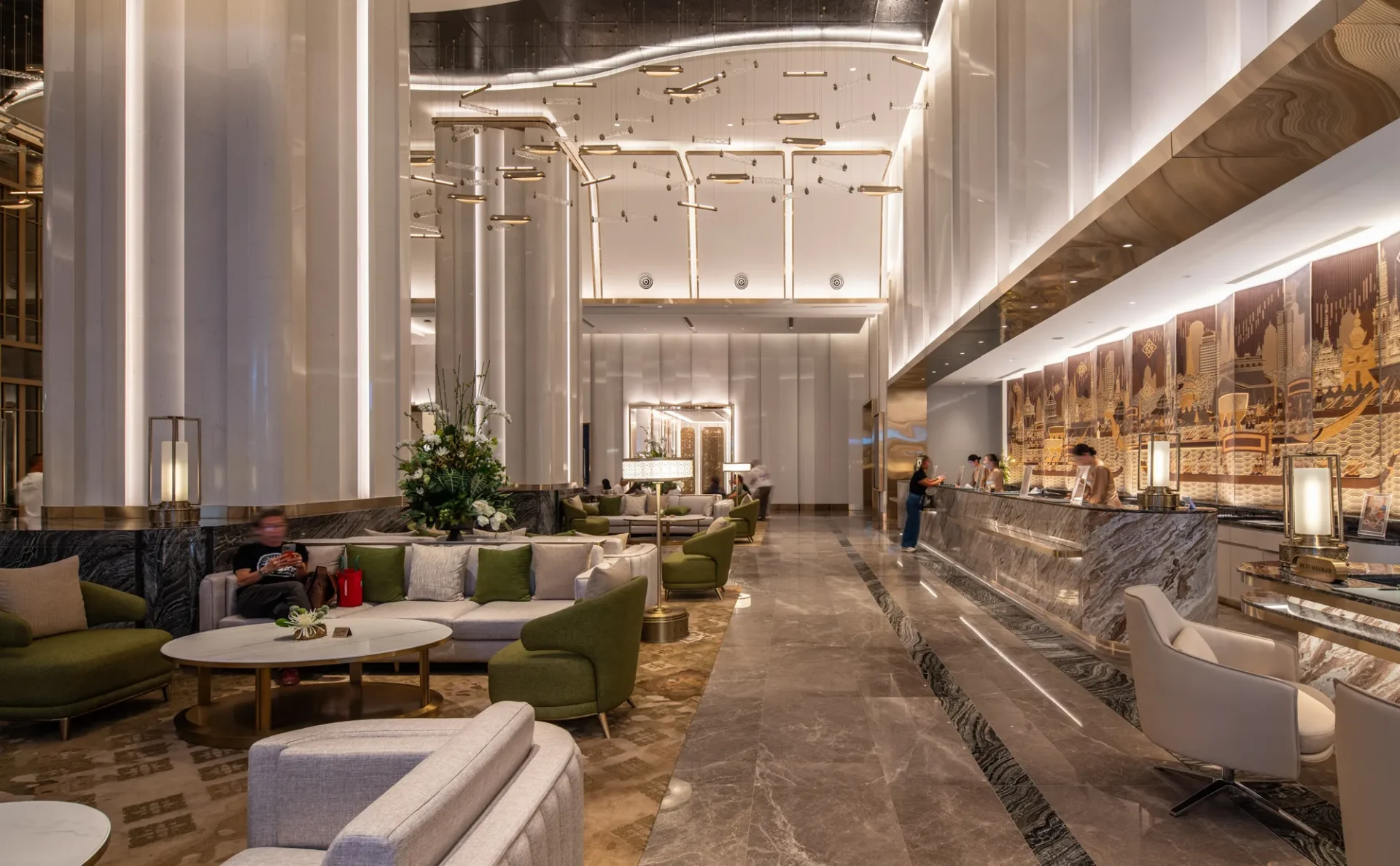 Beyond its striking gold-toned façade, the hotel serves as an urban sanctuary with world-class facilities, including a sky pool and versatile event spaces. Meinhardt Thailand is proud to have provided the façade, interior, and landscape lighting design for this prestigious project, ensuring that every architectural detail is beautifully accentuated from the street level to the 50th-floor rooftop.